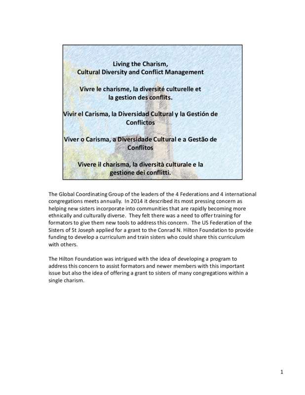 La Congregation Internationale des Sœurs de St Joseph développe un programme d'études sur la Diversité Culturelle et la Gestion des Conflits