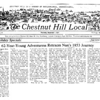 Newspaper Article Entitled "62 Year Young Adventuress Retraces Nun's 1853 Journey"