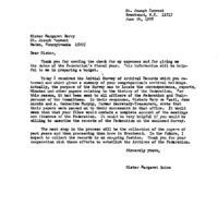 Letter from Margaret Quinn to Margaret Berry, which explains the purpose of a Federation survey sent out to gather information about potential Federation related archival materials.