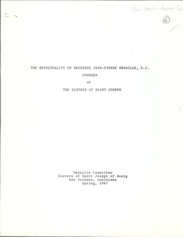 The Spirituality of Reverend Jean-Pierre Medaille, S.J,, Founder of the Sisters of St. Joseph