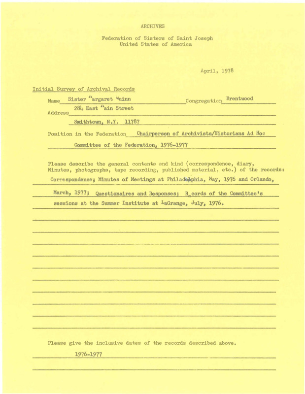 Images are provided for non-commercial, research, educational, and personal use only, and are not intended for reproduction or redistribution. For the above purposes the user may reproduce these materials (by download, printing, etc.) without further permission, on the condition that proper attribution of the source is provided by clearly acknowledging the name of the Library, the title of the web page or resource and the URL at which it was located, please credit as follows: Martha Smith Archives and Research Center, Hooley-Bundschu Library, Avila University, Kansas City, Missouri. For questions regarding use of digital materials contact the Martha Smith Archives and Research Center at 816-501-3620.